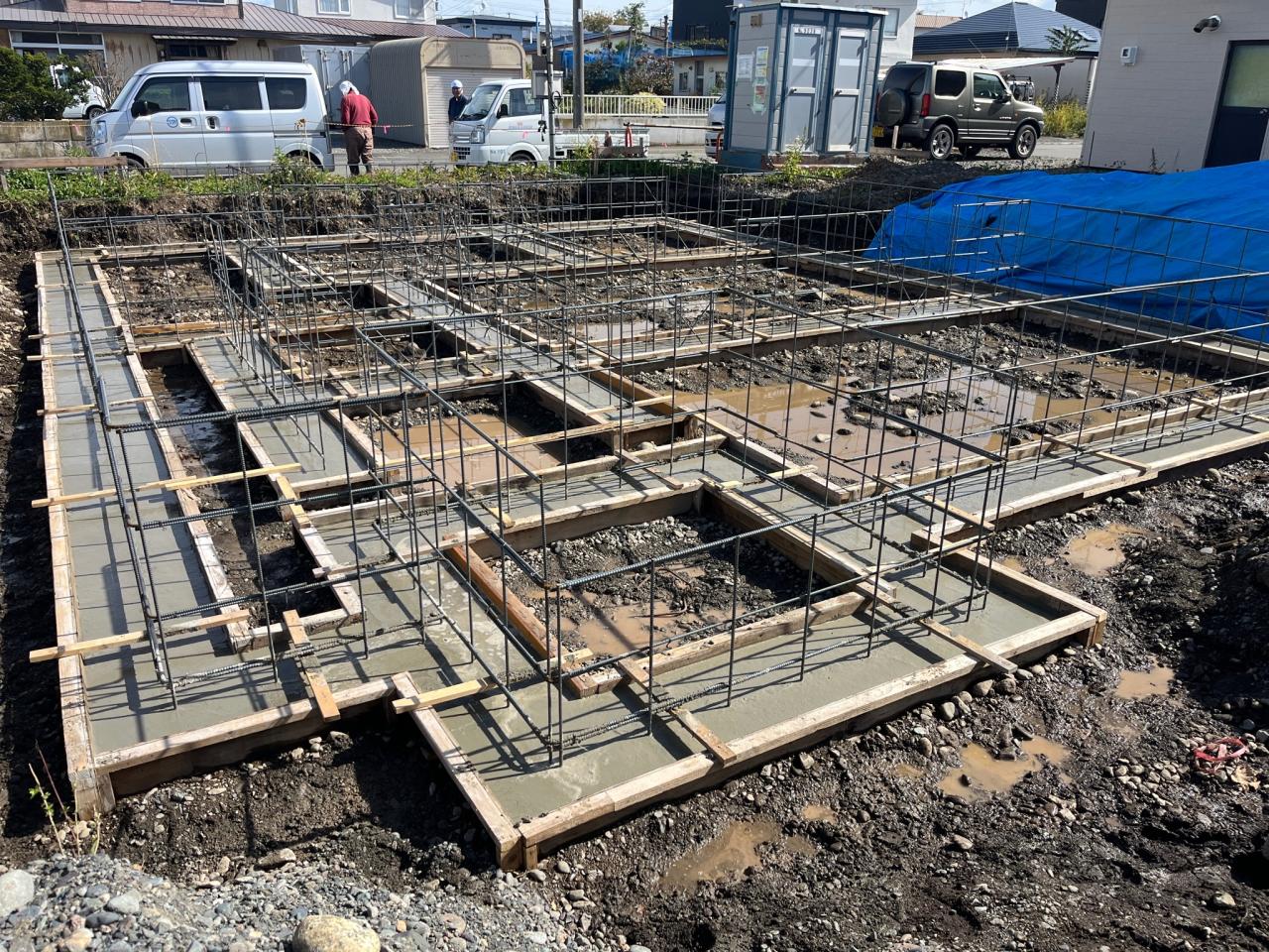 配筋検査を無事合格し、工程は順調に進みベースコンクリート打設まで完了しました!